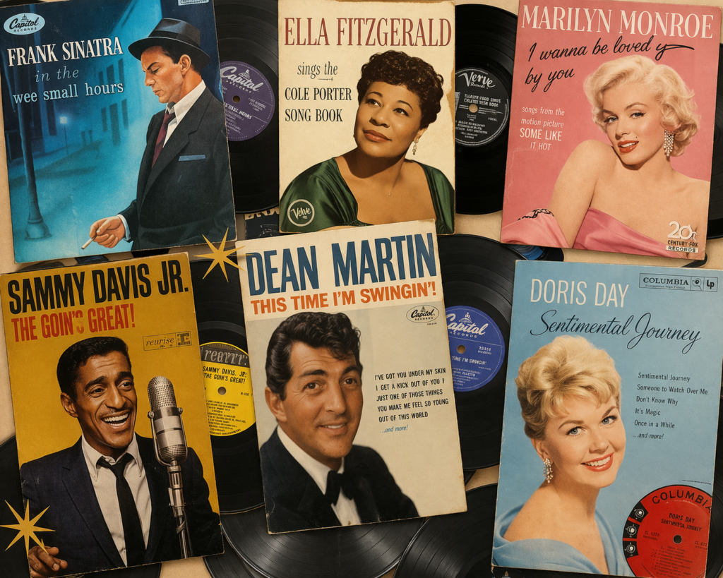 Een expositie van iconische platenhoezen van tijdgenoten van Marilyn Monroe. Een muzikale tijdreis langs de vriendenkring van Marilyn. Denk aan Frank Sinatra, Sammy Davis Jr. Ella Fitzgerald, Doris Day en vele anderen.